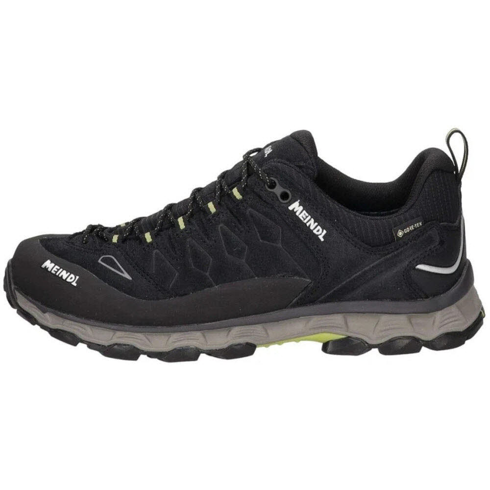 Der Meindl Lite Trail GTX ist ein robuster und leichter Wanderschuh, der sich ideal für sportliche Outdoor-Aktivitäten eignet. Er verfügt über einen handaufgezogenen Gummistoßschutz, der den Schuh dauerhaft vor Abnutzung schützt. Die griffige Gummiprofilsohle mit gut dämpfender EVA-Zwischensohle sorgt für sicheren Halt und eine angenehme Abrollbewegung. Die weit nach vorne gezogene Schnürung ermöglicht eine optimale Anpassung an den Fuß.